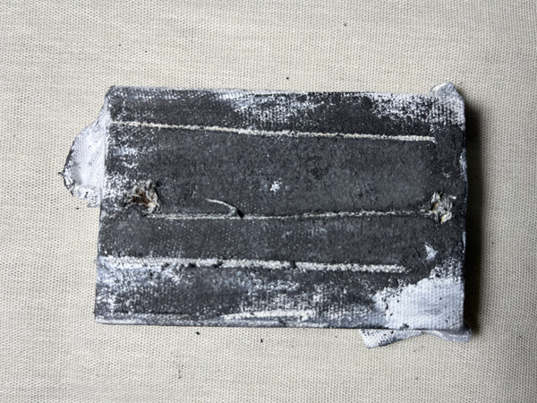 Wood block wrapped in fabric intervened on all sides