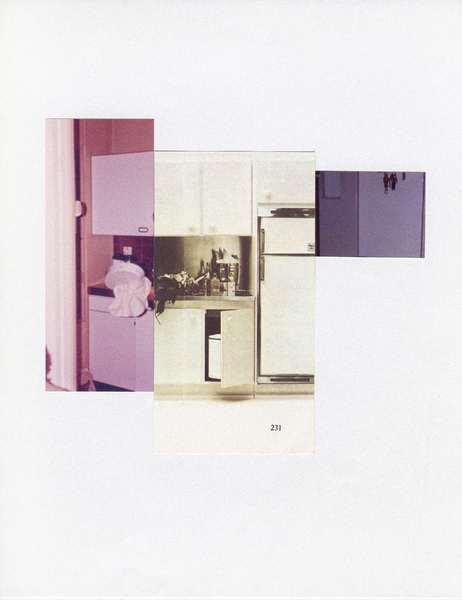 Through collage, I compare photographs my family took in the houses we built together with magazine images, and point out how reality attempts to match what is understood as the "ideal home." The decorative gestures attempt to resemble these images, but some moments of disorder, the effect of an authentic dwelling, break with the pristine and artificial feeling of advertising images, generating a dialogue between the experience of inhabiting a place, our expectations of it, and the individual memento.