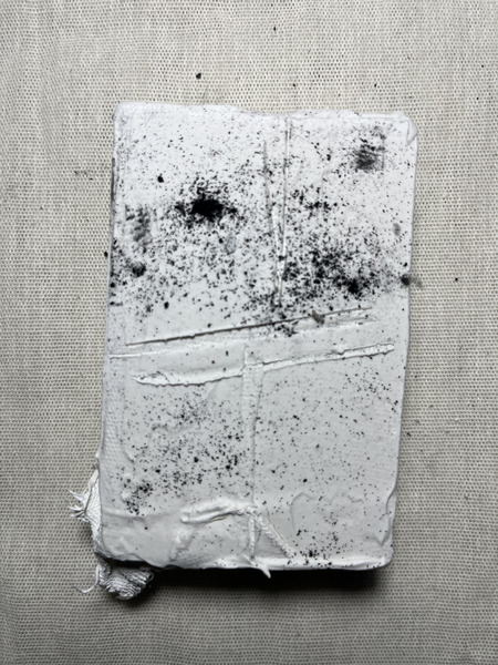 Wood block wrapped in fabric intervened on all sides