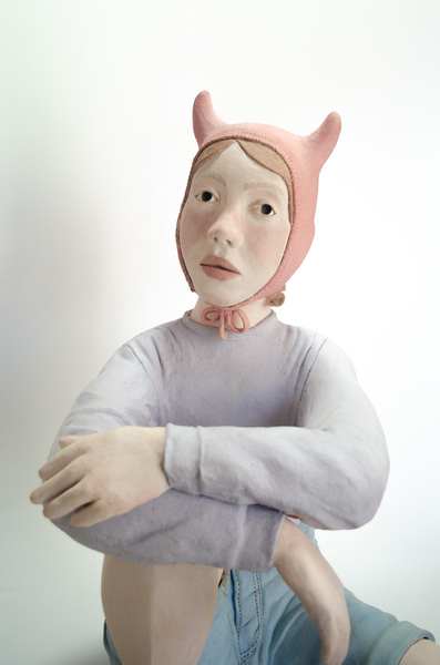 A girl with a steady, patient gaze, carrying a playful spark that hints at a little impish spirit. Her innocence and serenity radiate calm without imposing, showing confidence in her own world.