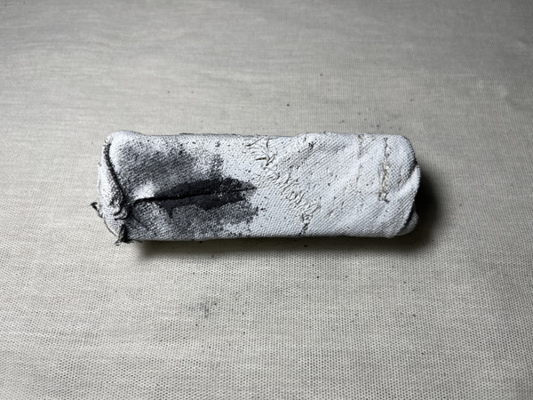 Wood block wrapped in fabric intervened on all sides