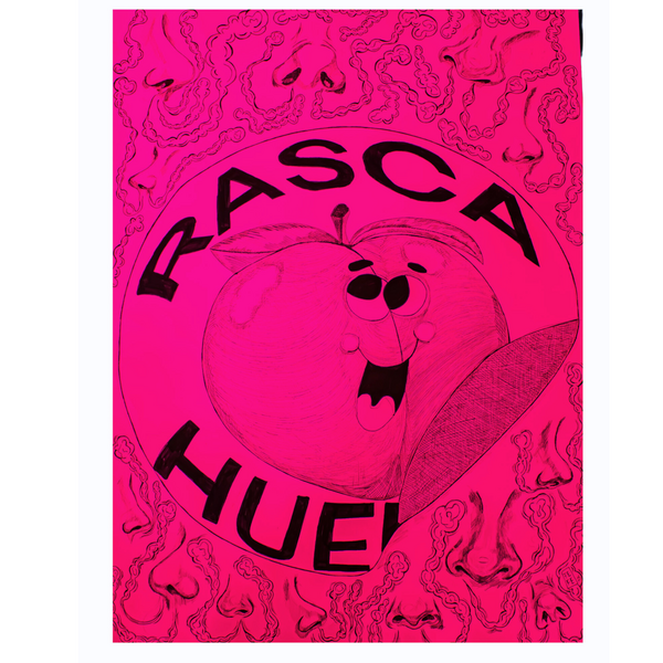 In this piece, I connect with the scratch-and-sniff stickers from my childhood, the ones that released fruity scents when scratched. Here, the work playfully simulates scratching and sniffing your own butt, without being grotesque. It maintains the idea of the sticker and the fruity aroma — in this case, a peach, humorously referencing the idea of an ass.
