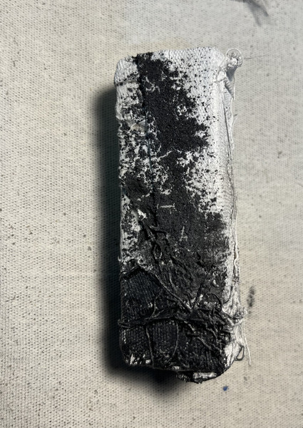 Wood block wrapped in fabric intervened on all sides