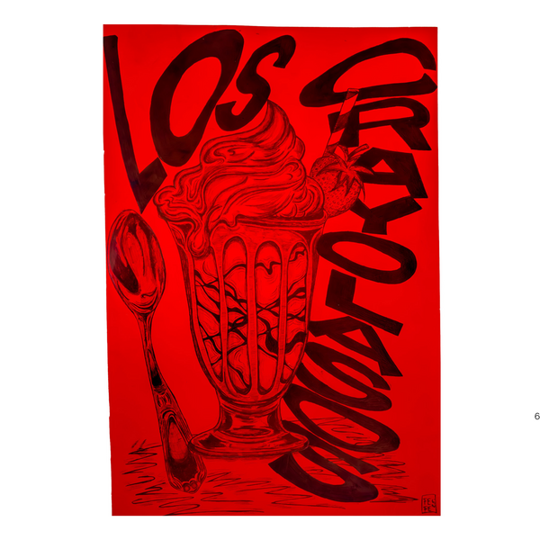 The piece playfully portrays, with a double meaning, an awkward bathroom moment — those “crayon marks” that might reveal someone just went number two. I find humor in this connection between that situation and the chocolate syrup often drizzled on cups when serving a milkshake or coffee.