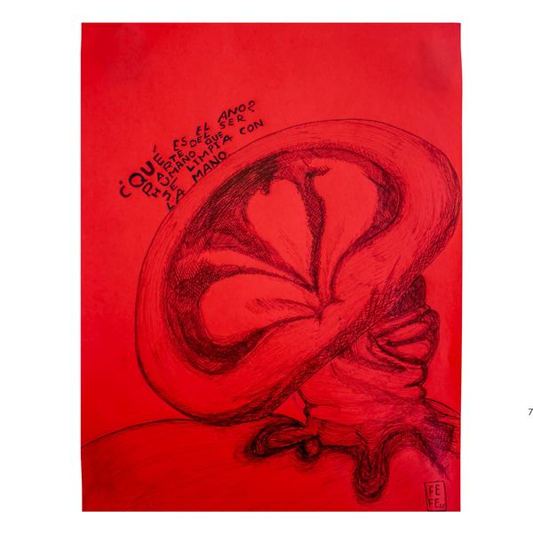This piece represents the anus — “El ano es la parte del ser humano que se limpia con la mano.” (The anus is the part of the human body that is cleaned with the hand.) The work plays with both language and imagery, referencing the colloquial expression “balloon knot” used to describe the anus due to its visual resemblance.