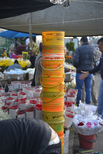 Una fotografía tomada en la plaza de mercado de paliqueado de Bogotá, Colombia, un día jueves a las 6:15 am, el mercado esta activo , todos trabajan, y esta imagen es un guiño a la risa, el engaño de las flores, la cruda realidad de lo popular.