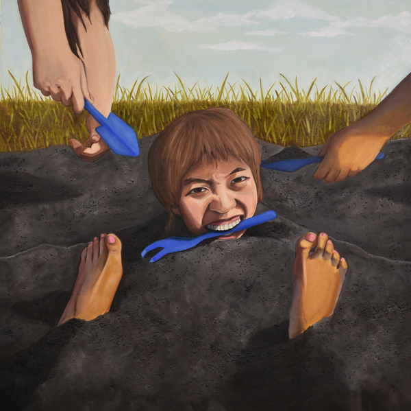 Oil stick, acrylic and oil painting on muslin