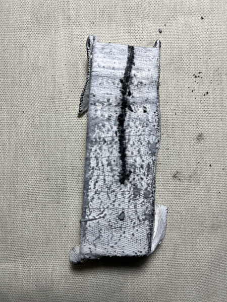 Wood block wrapped in fabric intervened on all sides