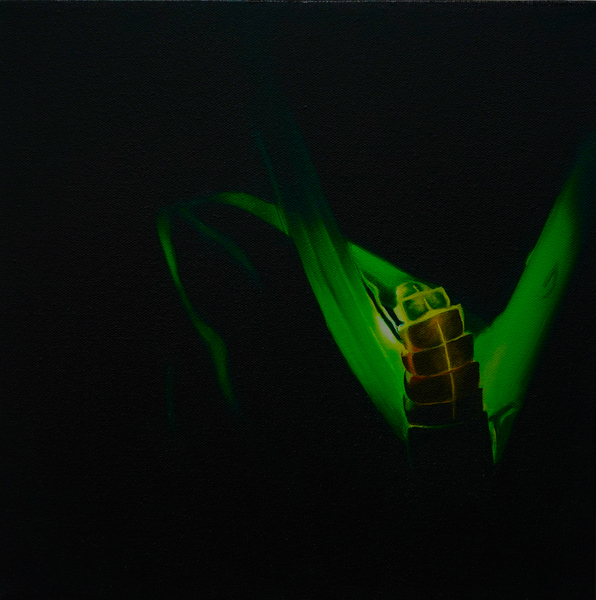Brillaban, pero no las veíamos del todo. Las luciérnagas formaban parte del paisaje nocturno de la infancia: estaban ahí, titilando como pequeñas certezas en la oscuridad. No eran un espectáculo extraordinario ni algo que se buscará; eran presencia espontánea, testigos silenciosos de que el mundo aún guardaba misterios. Las veíamos brillar sin entender cómo lo hacían. Bastaba con saber que estaban ahí, que algo —en la noche— tenía el poder de encenderse. Hoy, casi han desaparecido. Y con ellas, también algo de nuestras infancias. Las luciérnagas son, para mí, la memoria viva de una forma de estar en el mundo que hoy se desvanece. Un instante suspendido entre la inocencia y la imaginación. Lo que se pierde no es solo un insecto, sino una manera de mirar, de explorar, de habitar la noche sin miedo. Pinto lo que apenas se alcanzaba a ver: el contorno de lo que fue. Las luciérnagas no se extinguieron solas; se llevaron consigo la calma de una noche sin ruido, la promesa de una luz que no buscaba ser vista. Quizás, al buscarlas nuevamente, logremos volver a habitar esa quietud.